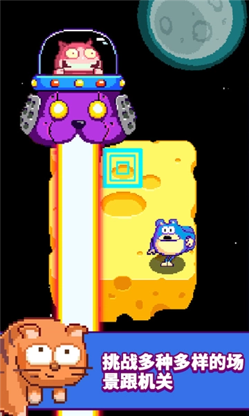 躲避狂人手机版是一款充满趣味的卡通魔性休闲益智游戏,其英文名称为CrazyDodgers。在游戏里,玩家将化身为卡通角色,在浩瀚宇宙中前往各个星球展开冒险。游戏采用卡通像素风格,色彩十分鲜艳。玩家在星球探索冒险时,会遭遇怪物的干扰,不能被它们抓住,同时还要收集星星,这样才能顺利通过该星球。游戏设置为闯关模式,每个关卡都有独特的BOSS,它们的技能各不相同,玩家需要依据敌人的属性来进行躲避。