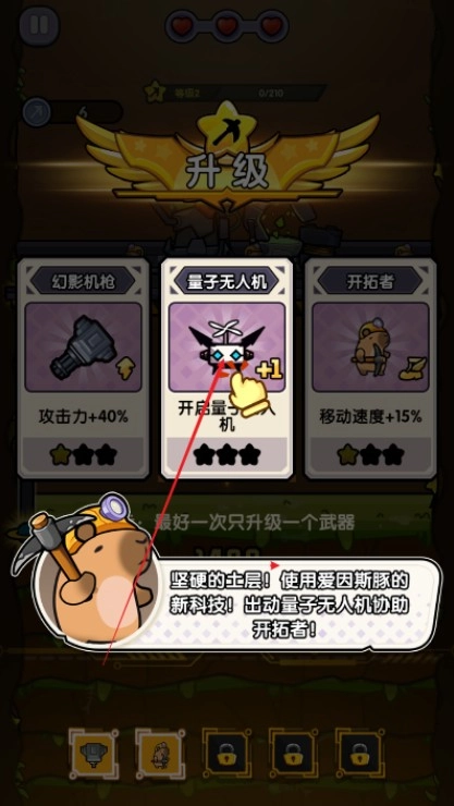 火力穿透为玩家打造了极具趣味的roguelike射击玩法体验。游戏内提供多种武器选择,角色等级越高,抵御怪物的能力就越强。你能自由规划资源分配,随着等级提升、钻头不断向下掘进,还会解锁更多武器种类。整体操作门槛较低,即使是新手玩家也能快速适应上手。