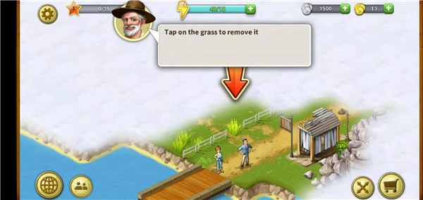 正式进入游戏后,点击杂草进行清除;