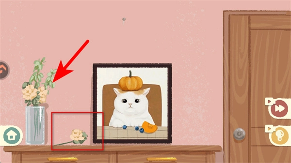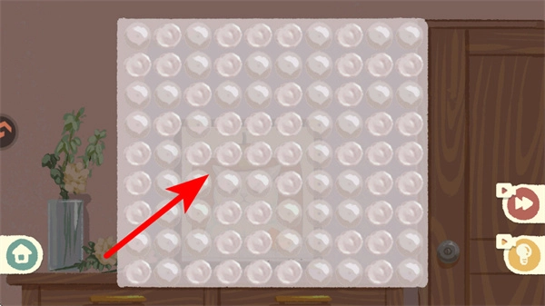 消除泡泡后,场景会解锁花朵等新物品,点击红色箭头所指的物品完成收集,以此推进关卡的解压与收集进程。