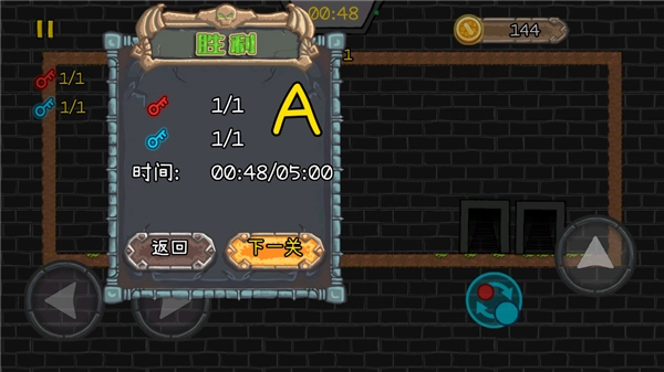 然后向上的按钮是用来跳跃的哦,你要做的就是操控火人打开红色石门,这其中还涉及切换角色的操作,之后再操控病人打开蓝色石门。