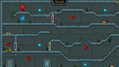 在这个游戏里,玩家得同时扮演两个角色,分别是冰宝宝和火宝宝。