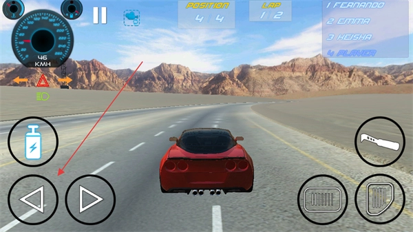 点击右侧的油门按键来让跑车加速,借助方向盘或者左右方向键调整车辆的行驶方向,努力超越其他对手。