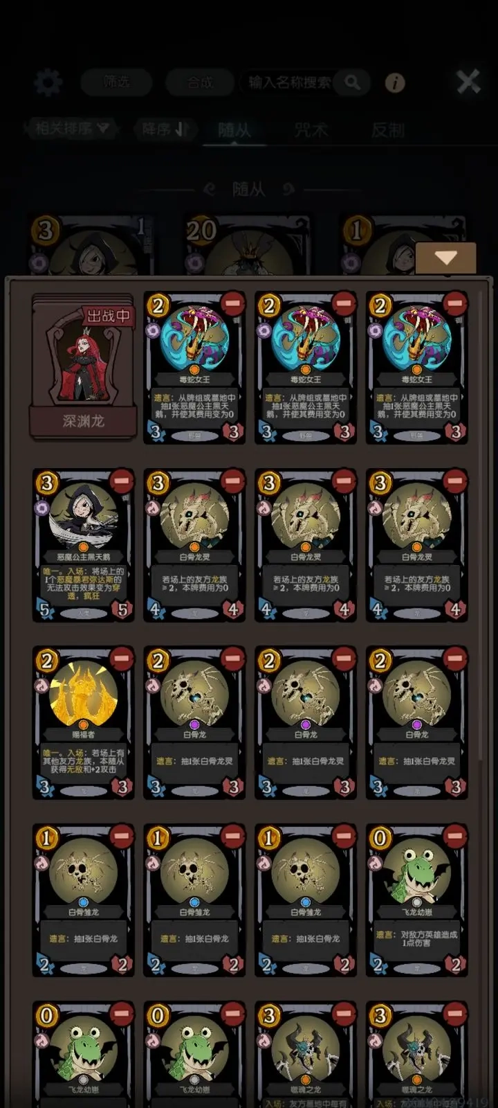 推荐的卡组是深渊龙卡组,核心在于毒蛇与黑天鹅的联动,这套组合在场面互换和抢血方面表现顶尖;再搭配白龙打出连击,能轻松实现前期场面压制,正好弥补了深渊套在暴君尚未登场时场面不足的短板。