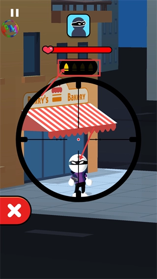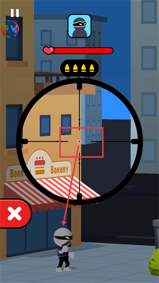 进入狙击瞄准镜视角后,把准星精准对准暴徒,保证射击命中,推动任务进度。