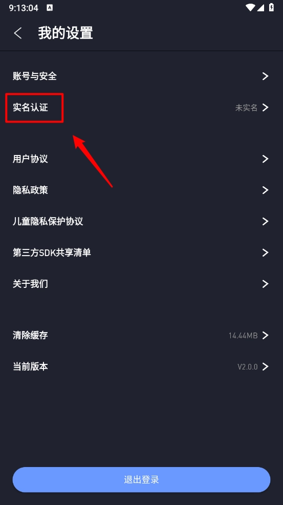 然后在我的设置页面点击"实名认证"。