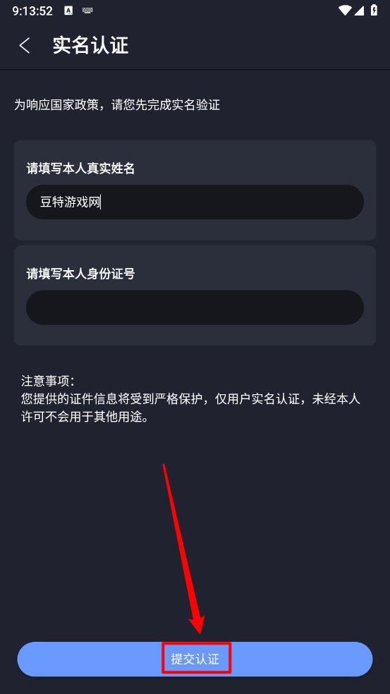 最后输入相关实名信息,点击"提交认证"即可。