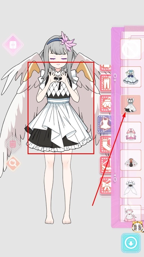 在换装界面,从右侧的列表里挑选连衣裙,给角色更换上身的服装,以此打造全新的外观。