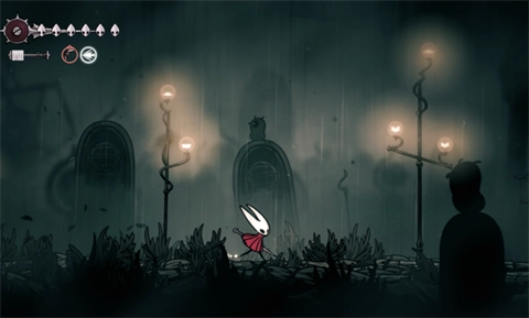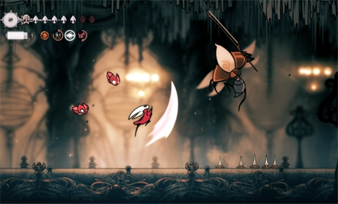 通过撞击可破坏的墙壁、启动环境里的开关、顺着上升气流移动或是跟随光蝶的指引,能够找到隐藏的房间和捷径。一些隐藏的商人会售卖神级纹章,像“注命甲”这类,能显著增强生存能力。