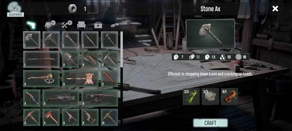 挑选好想要锻造的装备或工具后,点击右下角的“CRAFT”按钮,就能完成制作流程。