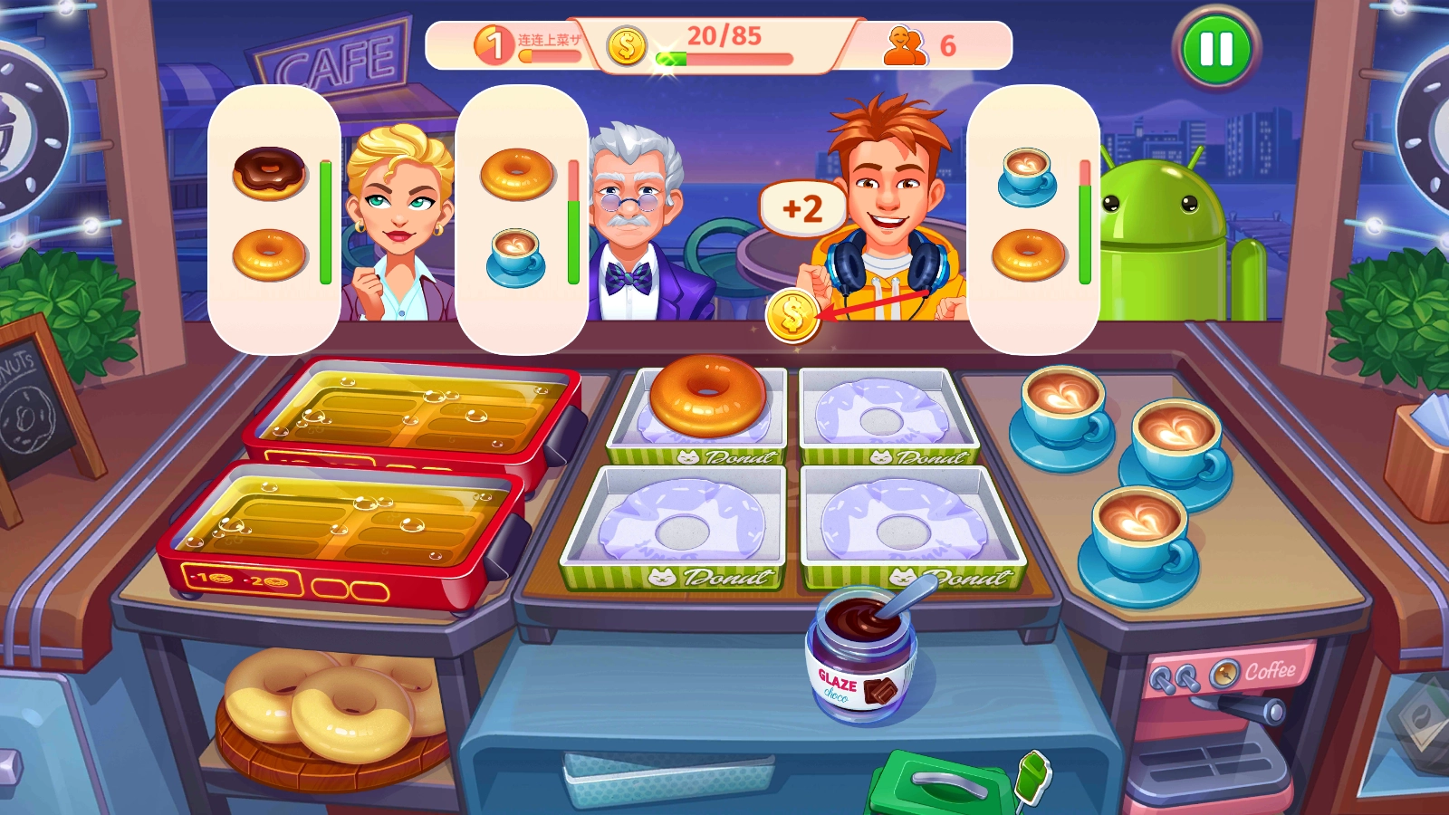 你是否渴望成为全球顶尖的大厨?那就来《疯狂大厨》里挑战一番吧!在这里,你能学习制作世界各地的美食,甜甜圈、披萨、汉堡、烧烤等,你想吃的这里都有!你需要在短时间内制作出尽可能多的美味佳肴,并且要满足客人的需求,这样才能获得更多的收入!当你积累了足够的资金,就可以解锁更多区域,制作更多种类的美食!