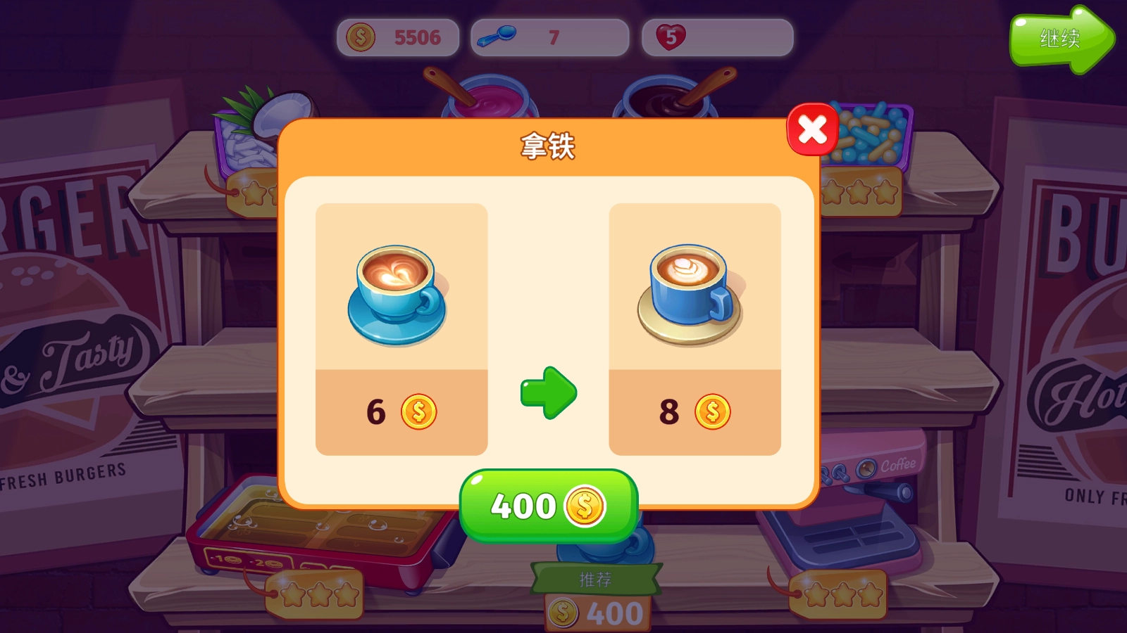 准备妥当后,点击食物就能递送给对应的客人,随后获得金币。
