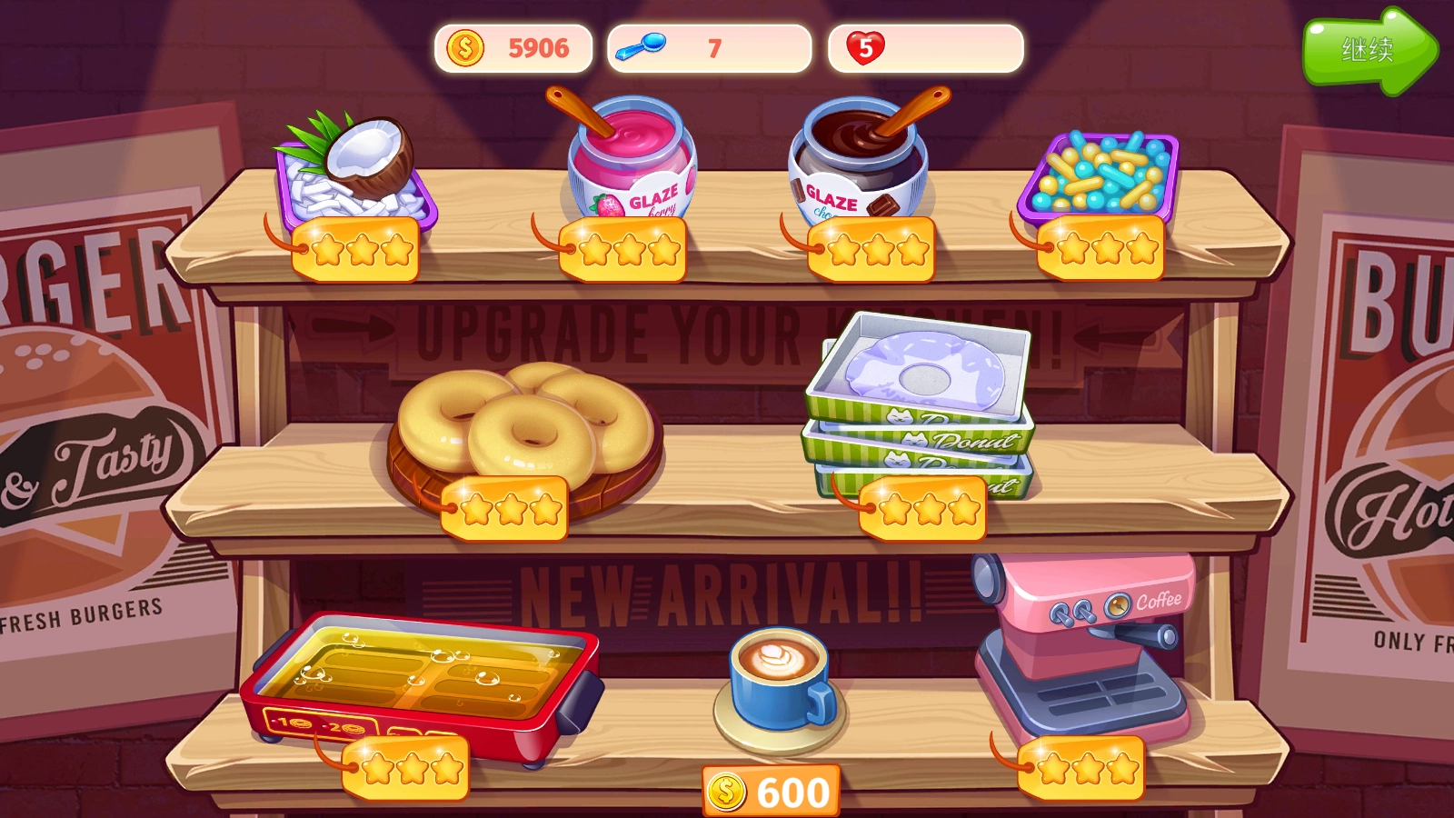 游戏开始前我们还能使用各类道具,像这里就有能确保甜甜圈不会烤糊的锅子。