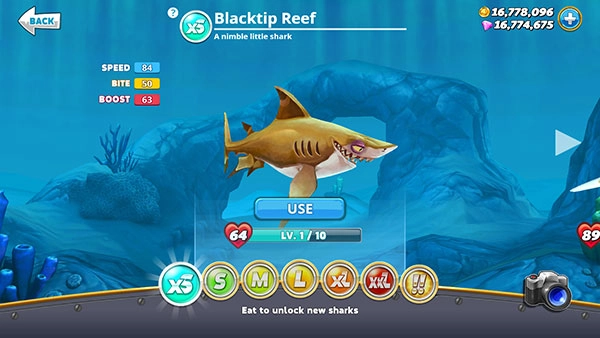因此玩家需要引导鲨鱼前往富含高营养食物的区域,或是鱼群密集的地方。