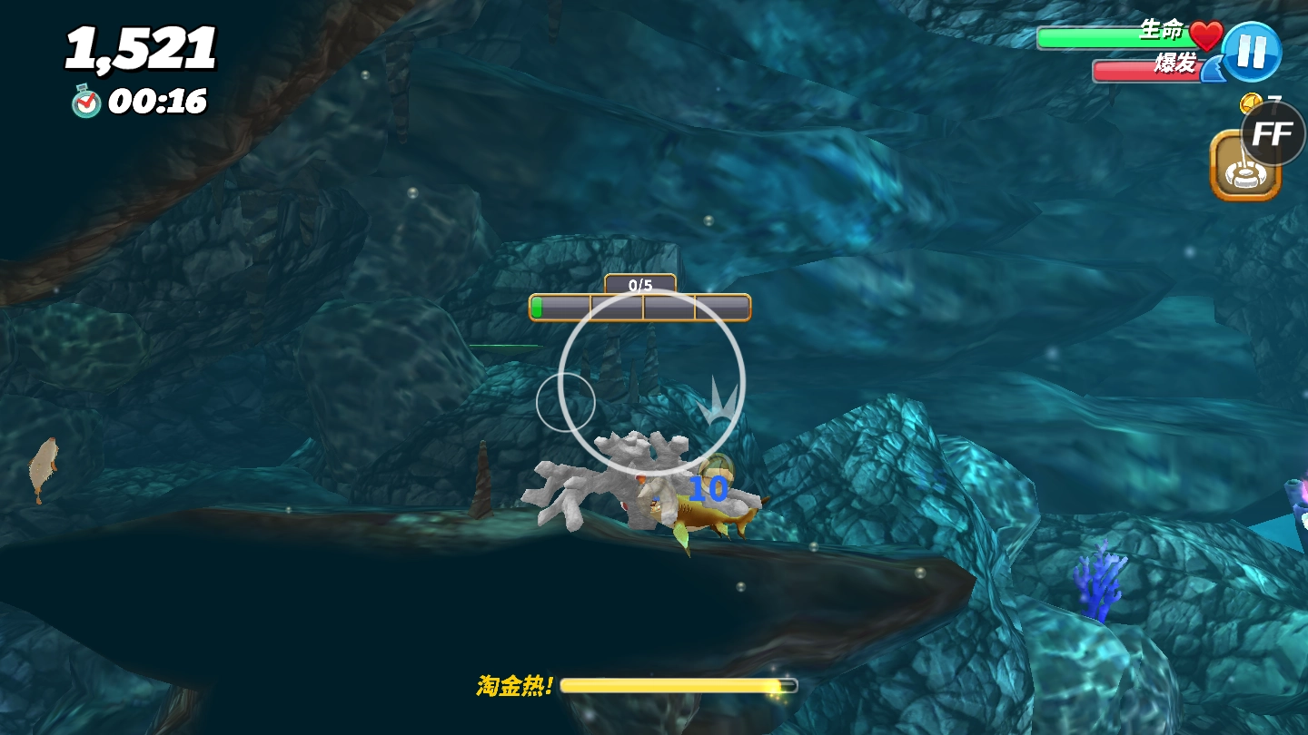 第三点,收集饥饿信,等集齐了,你的鲨鱼就会变得又大又无敌。记得赶在淘金热(要是超级淘金热就更好了)的时候开启无敌模式,这样就能狂赚一笔。