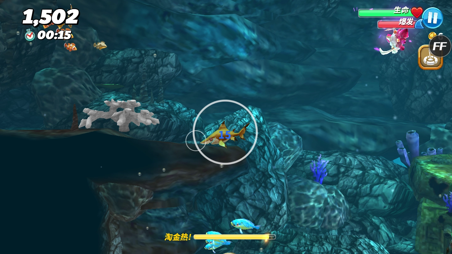 游戏进行到后期阶段,鲨鱼的生命值下降速度会变得极快,尤其是体型较大的鲨鱼,往往短短几秒钟内血量就会完全耗尽。