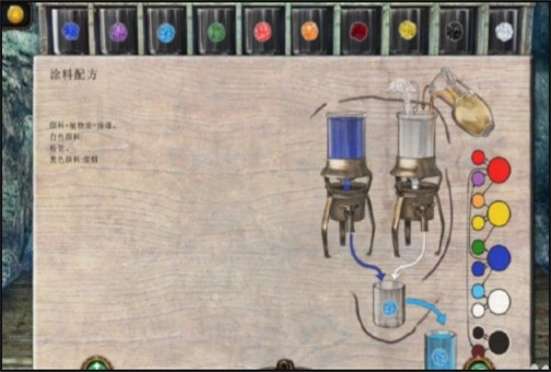 完成所有颜色的调配工作后,点击顶部那一排烧瓶,就能得到画具套装了。