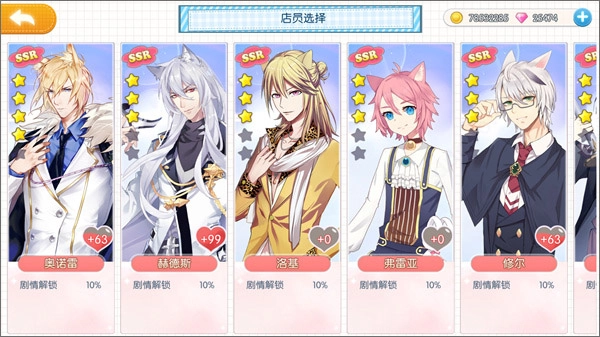 店员觉醒:SSR级别的店员可以觉醒,觉醒店员就比较有难度了,和升星一样也是个需要长线积累的部分。除通用道具“魔法铃铛”外,每个店员还有一个专属觉醒道具,需要通过完成该店员事件获得。觉醒后的店员会获得一个新技能,每个人的觉醒技能都不一样哦。最重要的是觉醒后的立绘和建模也会发生变化,撩妹实力更上一层。