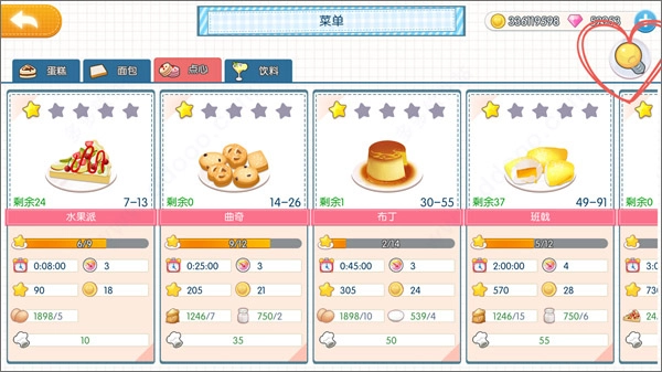 点击切换至研发页面,就能查看哪些食品具备研发条件。要是暂时无法研发,那就说明相关食物的制作量还不够,继续多做一些就好啦。