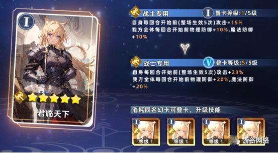 君临天下:每回合开始前,自身攻击提升23%,我方全体双抗增加20%。像吕布和悟空都适用这个效果,相对而言吕布更合适一些。