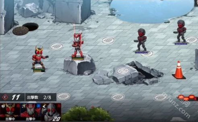 进入假面骑士防卫战士游戏后,点击屏幕下方中间的按钮即可开始闯关。