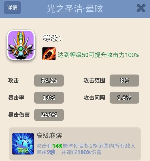 第一类是圣光,它属于加农炮类型,有着单点输出的特点,每次攻击都会叠加伤害,攻击数值极高,是后期当之无愧的最强存在。