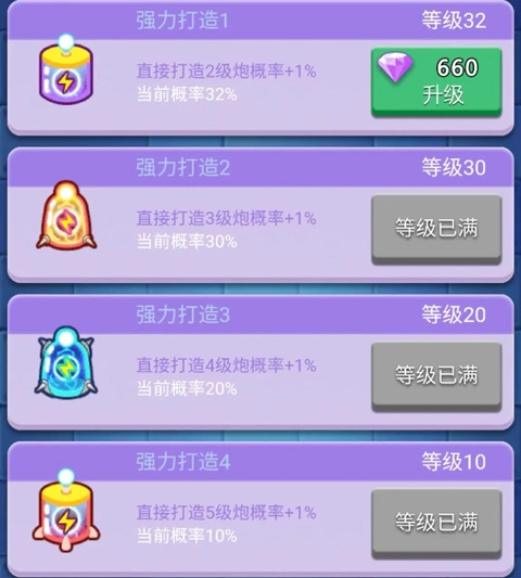 建议优先升级魔法炮,我个人习惯是让主炮(比如火龙这类)的等级始终比魔法炮高出50级左右。要是遇到打不过的boss,记得升级圣光来应对哦。