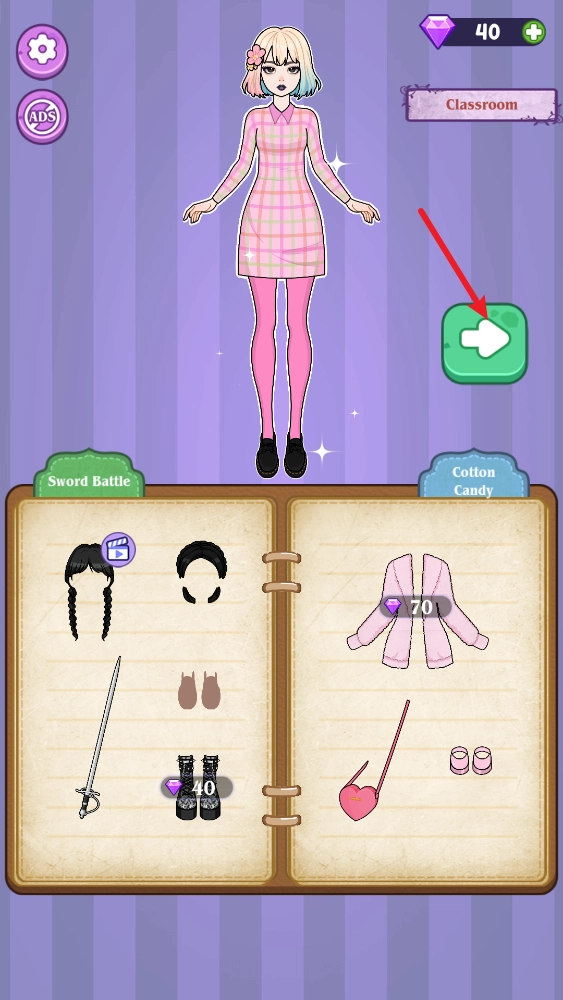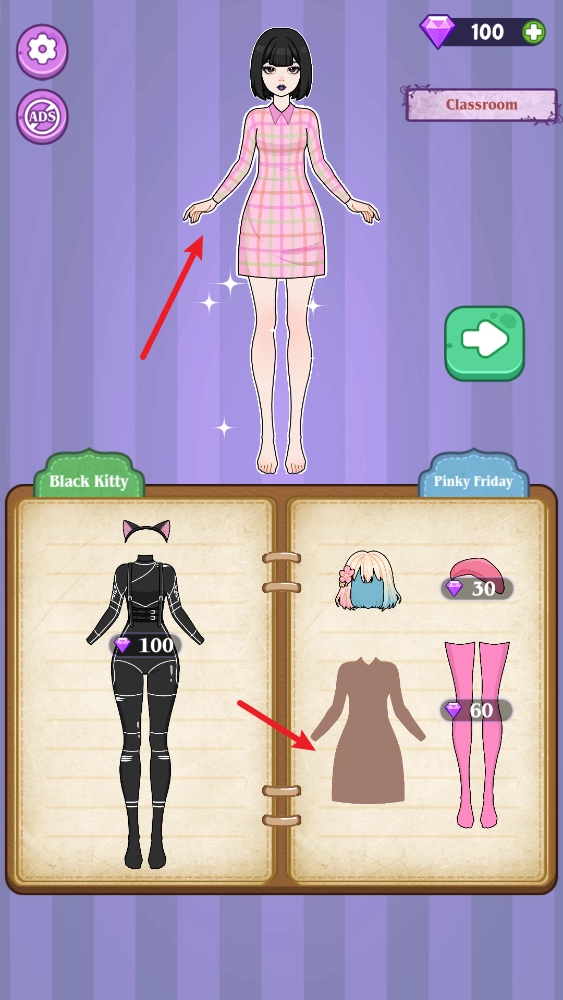 拖动下方书页上的服装即可为角色进行打扮。
