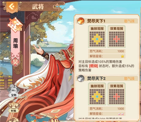 从周瑜技能释放的效果范围不难看出,他属于群攻类型的武将。当目标处于燃烧状态时,他对其造成的伤害还会额外提升。