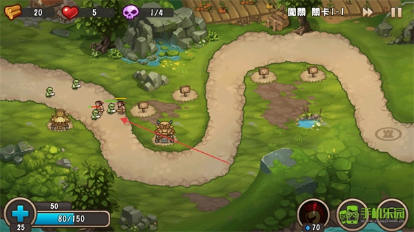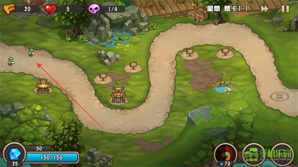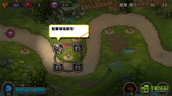 按照提示尽快修建箭塔,把资源用在路径旁的空地上搭建箭塔,启动防御布置。