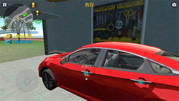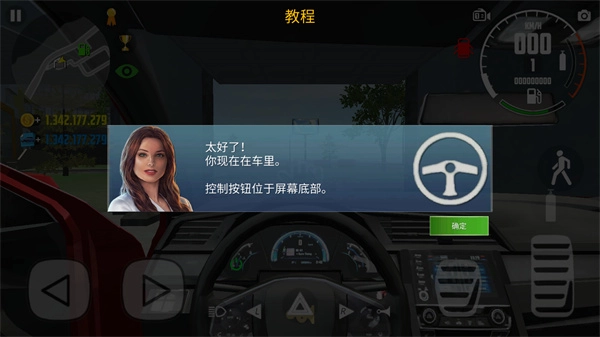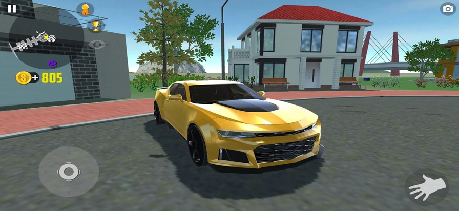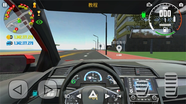 左下角的按键可操控角色移动,当角色靠近车辆后,打开车门并进入车内,即可启动驾驶功能。