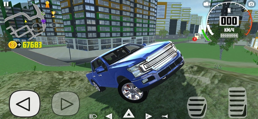 游戏左侧下方的按键能够操控车子左右移动,右侧下方的按键则可以实现加速和减速功能。