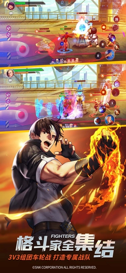经典角色阵容:草薙京、八神庵等经典角色悉数登场,技能与招式均完美复刻。