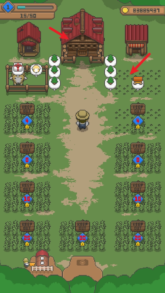 可以自由开垦农场土地,通过升级解锁更多设施,养殖更多动物,赚取更多金币!