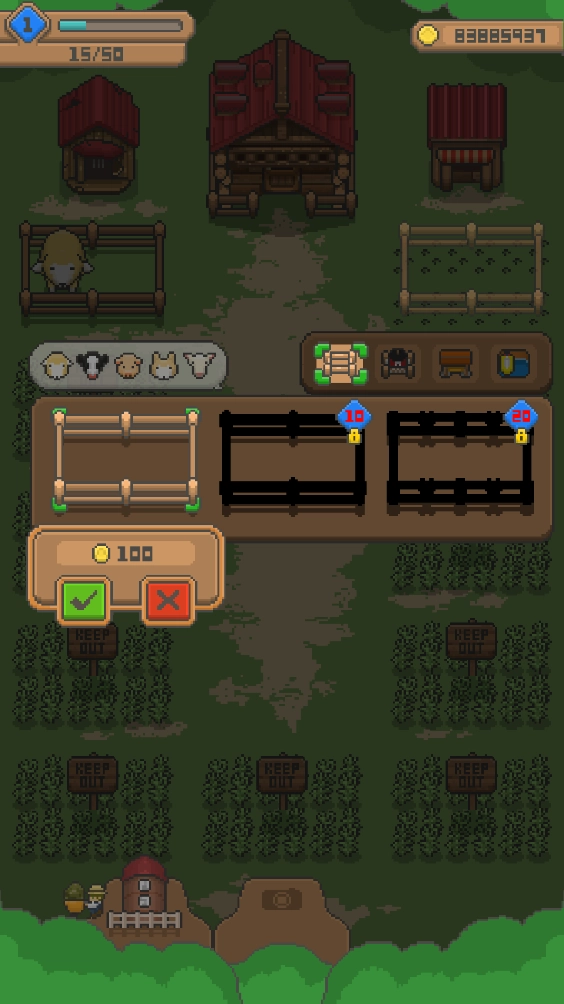 《迷你像素农场》是一款采用可爱像素风格打造的农场主题模拟经营游戏。在游戏里,玩家能拥有一片专属农场,从清理杂草起步,搭建围栏饲养各类动物,而收割的杂草可作为动物饲料;之后通过收获动物产出的物品获取金币,用于扩建更多土地。通过这样的循环操作,玩家能不断提升等级,解锁更多设施与动物,让农场逐步发展壮大。