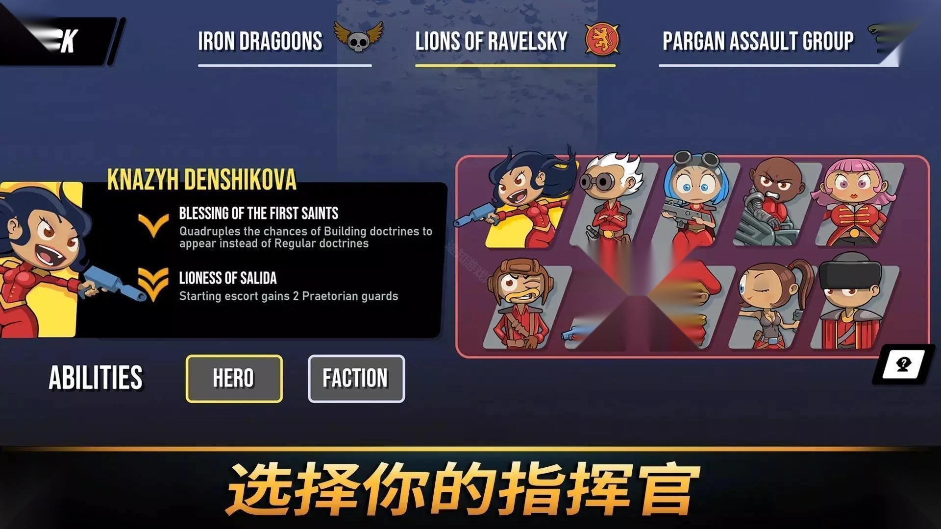 这些差异决定了工事的建造方式、部队的部署策略以及战场上的控制手段。 2. 活力四射的2D美术风格,拥有超50个派系的可定制动画与专属背景设定。