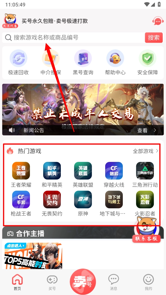 还可以切换至"买号"板块,根据账号类型选择游戏。