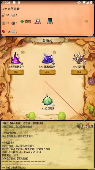 4、战斗后升Lv.2,点击调【5倍速】加速战斗,高效推进裂谷Lv2。
