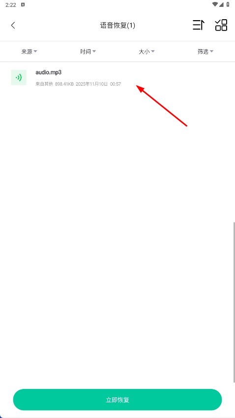 在语音恢复页面,找到类似【audio.mp3-语音文件】这样的条目,点击即可查看详情。
