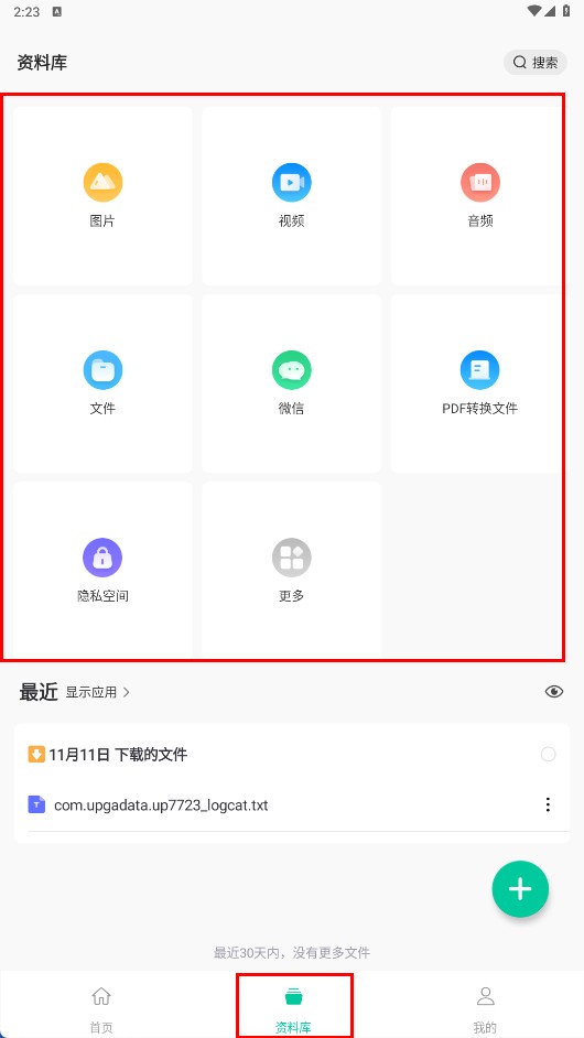 点击底部的【资料库-功能按钮】,就能查看图片、视频、音频等各类文件,并对这些分类文件进行修复。