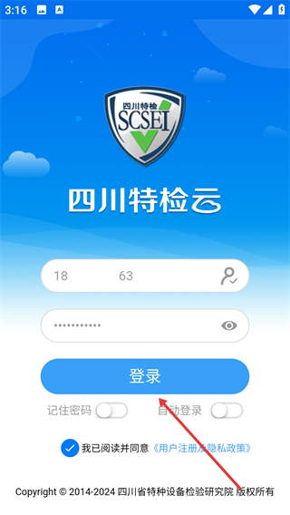 在完成信息填写与选项勾选后,点击【登录】按钮,即可完成【四川特检云】账号的登录操作。