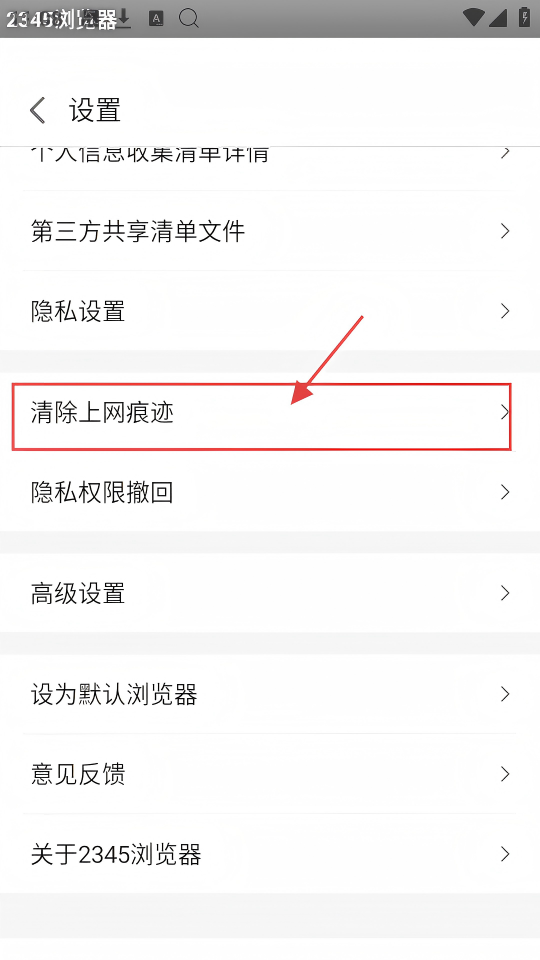 在设置页面里,找到【清除上网痕迹】这个选项并点击它,就能进入到清除痕迹的相关界面,进而管理自己的上网痕迹了。