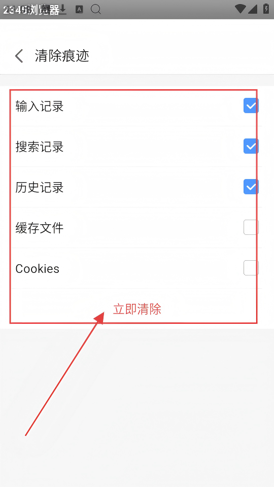 进入清除痕迹界面后,你可以挑选输入记录、搜索记录等需要清除的内容,接着点击【立即清除】按钮,这样就能完成清除操作了。