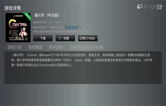 找到想要的游戏以后,点击该游戏,进入【游戏详情】界面,点击【】则可以自动和安装。在该页面你还可以看到游戏的介绍、截图、相关游戏、游戏评论,与游戏相关联的信息。