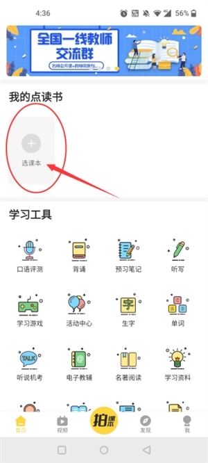 可以使用拍课本功能。在倍速课堂主页底部点击【拍课本】按钮,拿出课本拍一拍,就可以点读了!