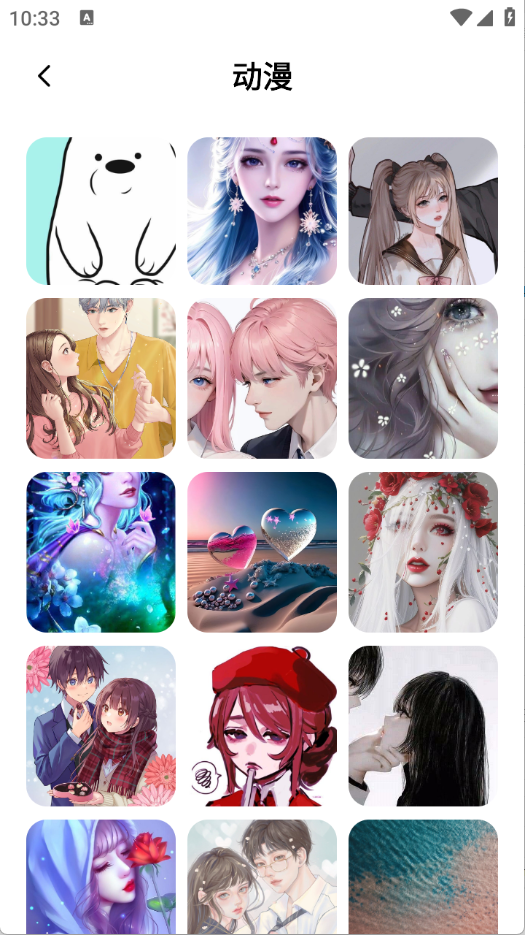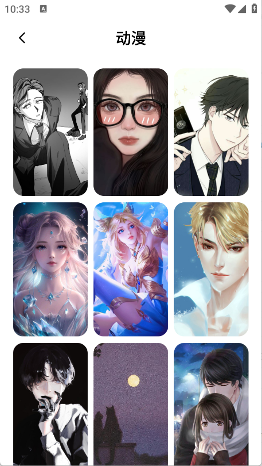 AniCh壁纸涵盖壁纸、头像与表情包,适配多种手机机型,动漫、风景、萌宠等各类风格一应俱全。所有壁纸资源均为免费,且持续更新,分类细致清晰。用户可直接设置使用,也能保存或收藏,无需再四处寻觅壁纸、头像和表情包资源。