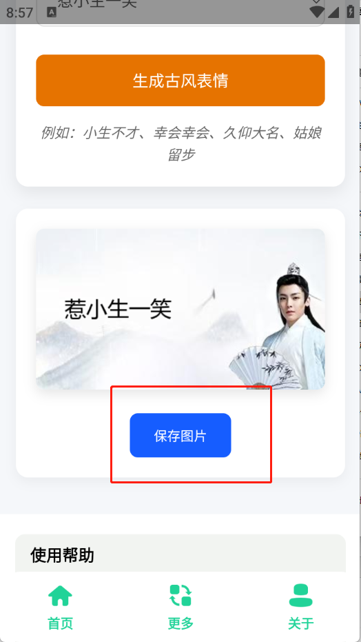 古风小生表情包生成工具,一款专门制作表情包的软件,只需输入关键词,就能产出你心仪的表情包素材。所有功能完全免费,生成的表情包支持保存,可在各类聊天软件中使用,为聊天增添趣味,轻松化解聊天时的尴尬氛围。