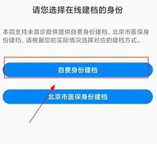 3、然后选择“自费身份建档”,有当地医保的用户可选择下方的医保建档。