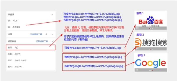E2 还能进行数组操作,在M浏览器里轻站或虫子获取列表的函数就需要获取数组。为了更容易了解并使用函数,一般处理文本的函数均以 t 开头,比如取文本左边的 tz , t = 文本,z 是左的拼音头,然后就能知道取文本右边函数为 ty 了。 处理数组的函数 以 i 开头,如 .ij(aaa) ,j = 加, 往数据中加入一行数组,值为 aaa 。