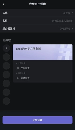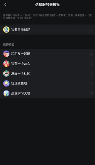 进入选择服务器模板的界面后,既可以点击“自由创建”,也可以挑选其他合适的模板。